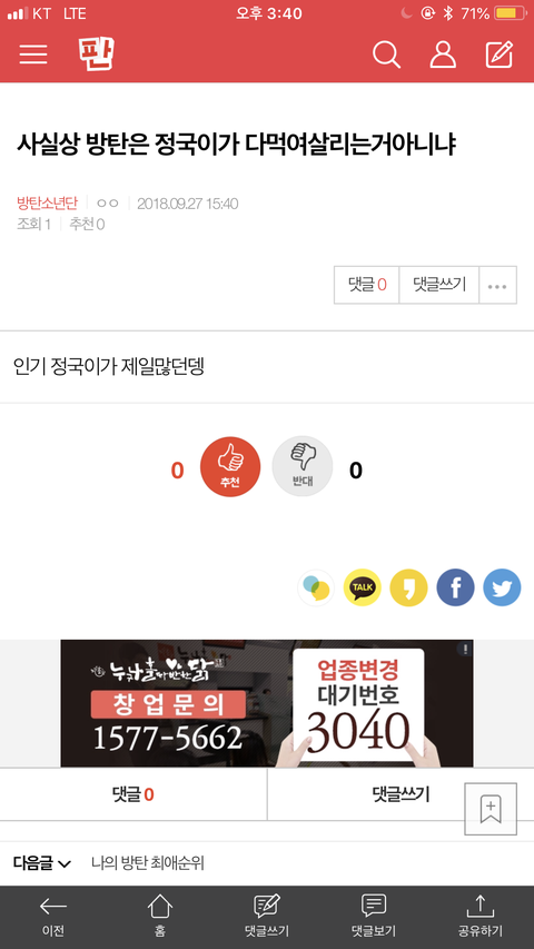 밑에 니들팬덤,방)탄팬수, 암.이, 슴.인증 작작, 최애순위, 정.국이글여기서봐