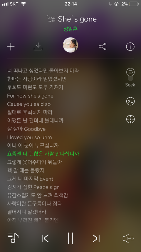 옛날에도 이런글 봤던거 같은데 헤어진연인한테 하는말일수도 있는데 탈덕한 팬들한테하는말 같기도함 ㅠㅠㅠㅠ 진심 이거 개띵곡인듯 타팬인데 지금 학원 끝나고 횡단보도에서 이노래들으면서 리듬타면서 왔다