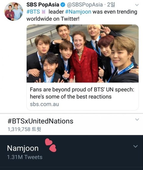 유엔 연설을 보고 방탄에 대해 알게된거겠지?