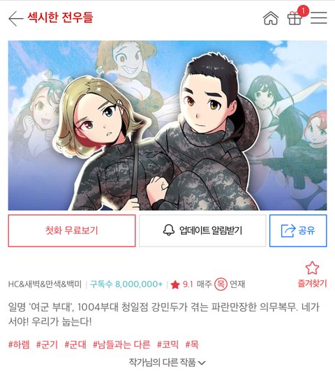 이딴 만화를 800만 한남들이 돈 주고 본다는거부터가 소름끼치는데 군대를 왜 가ㅋㅋ~ㅠㅠ 씨~뷰랄 군대 가서 생리 할거 생각만 해도 끔ㅡ찍ㅋㅋㅋㅋ ㅠ 가기 싫었는데 더 가기 싫어졌네 우액
