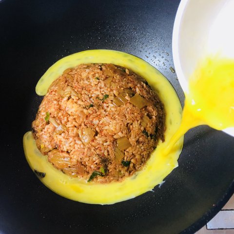 우주선 김치볶음밥이에요 계란 넣을 때가