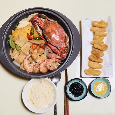 된장만들기체험에서 얻은 된장으로 새우된장찌개를 만들어서 먹었어요 볶음밥도 볶았어요 :)