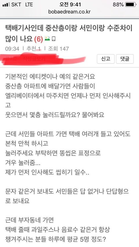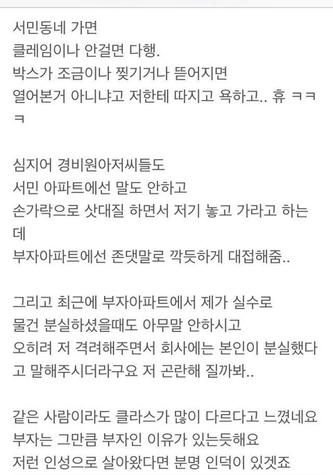택배 기사가 느끼는 중산층과 서민