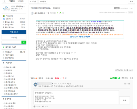 고객들끼리 공유하는 게시판에 올리니까 아예 정지를 시켜버리네요.
