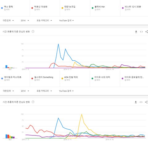 여자가수 : EXID 위아래, 태연 아이, AOA 심쿵해, 씨스타 쉐이킷, 아이유 스물셋 순
