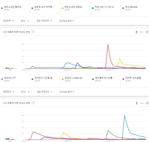 여자가수 : 트와이스 TT, 여자친구 시간을 달려서, 트와이스 치얼업, 레드벨벳 러시안룰렛, 마마무 넌이즈뭔들 순