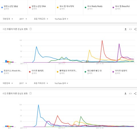 남자가수 : 방탄소년단 봄날, 방탄소년단 DNA, 워너원 에너제틱, 위너 리얼리 리얼리, 워너원 뷰티풀 순