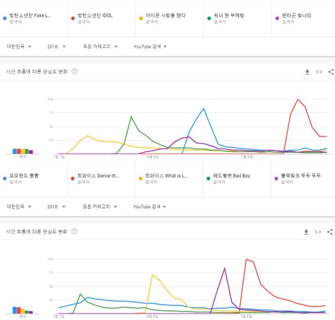 남자가수 : 방탄소년단 페이크 러브, 방탄소년단 아이돌, 아이콘 사랑을 했다, 워너원 부메랑, 펜타곤 빛나리 순