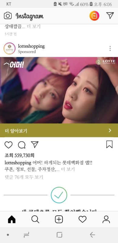 인스타 내리다가 롯데백화점 앱 광고 봤는데 처음에 누군지 몰랐는데 보니까 이달소더라