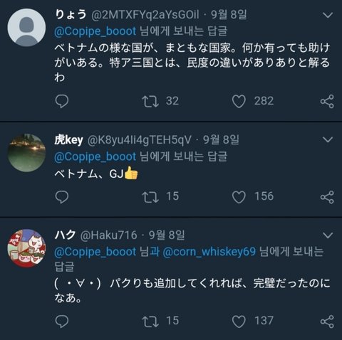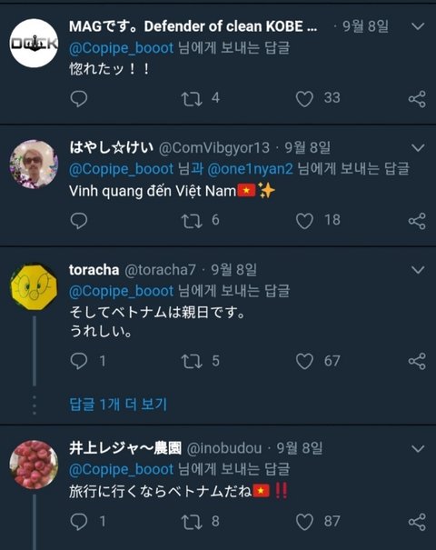 근데 댓글에 일본인들은 "베트남 멋지다 일본도 저렇게 말해야 할텐데" "베트남은 친일국가" "전부터 베트남은 멋있다고 생각하고 있었음" "누구와는 다르게 멋있네요"이런 반응임