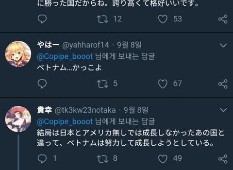 베트남 같은 나라가 제대로 된 국가. 뭐가 일어나든 도움이 돼. 특아시아삼국 (*한국북한중국 비하발언)하고는 민도의 차이가 뚜렷하게 알겠어.