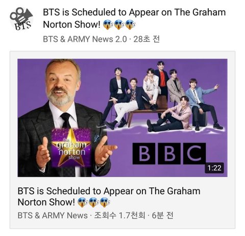 방탄 영국 BBC Graham norton show 출연!!