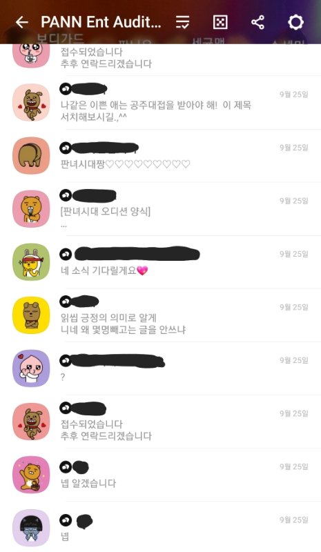 플러스친구를 통해 오디션 접수 받고 있습니다.