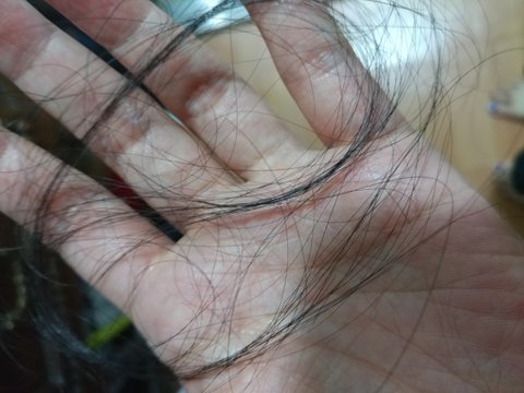 밑에사진 머리 양쪽으로 손으로 빗어낸후 빠진 머리 입니다. 마니 줄어든 양이에요