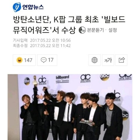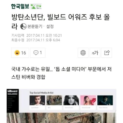 작년 5월초 빌보드 노미니, 5월말 톱 소셜 아티스트상 수상한 방탄소년단..