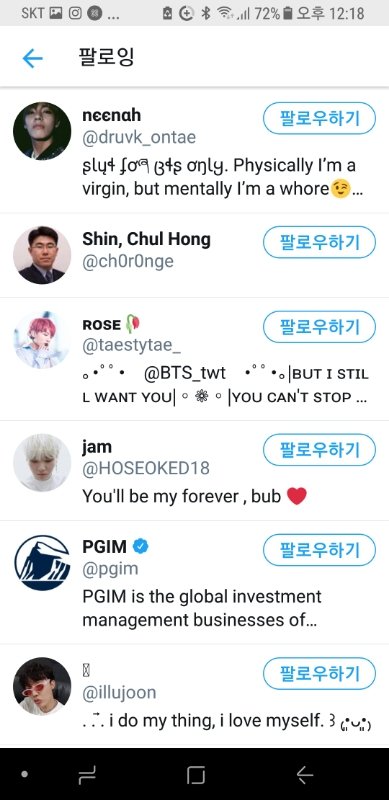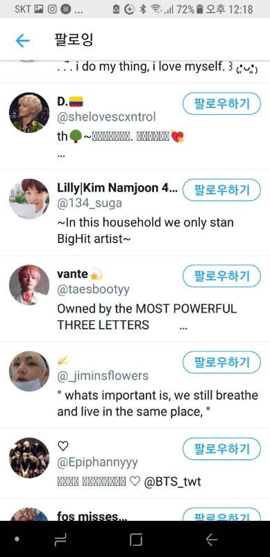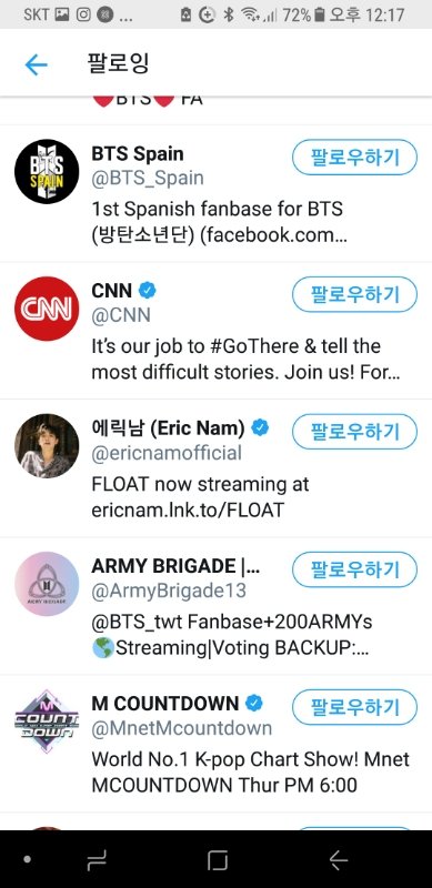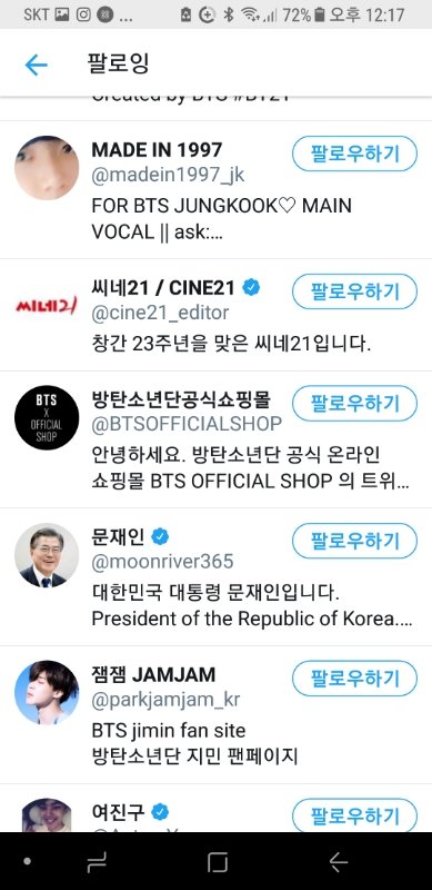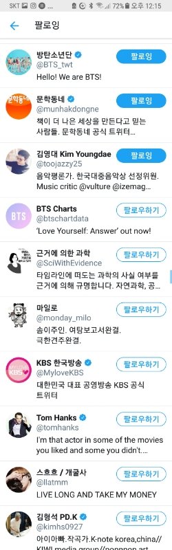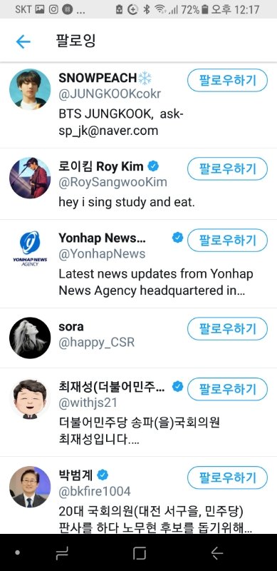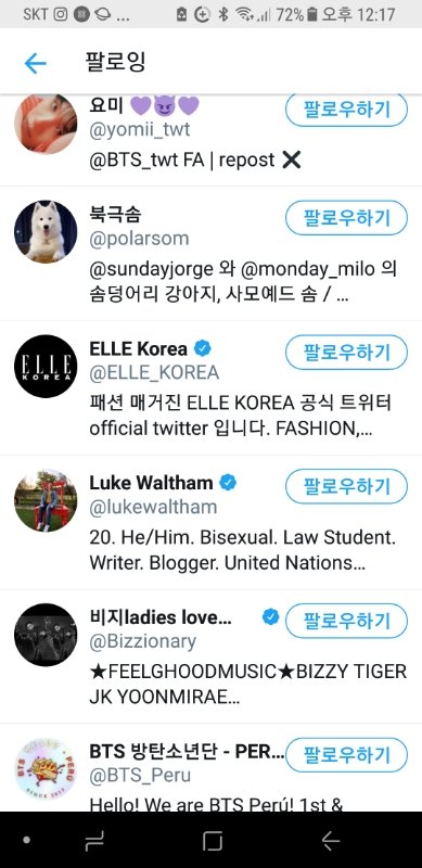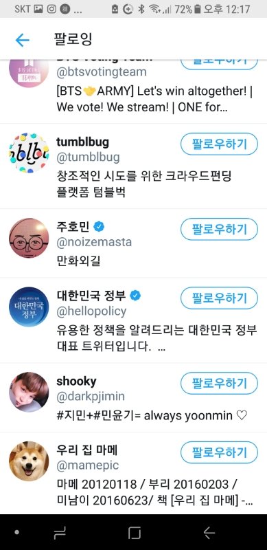 방탄소년단 관련 내용 올리시길래 그냥 궁금해서 팔로잉 봤는데...