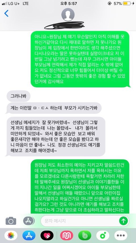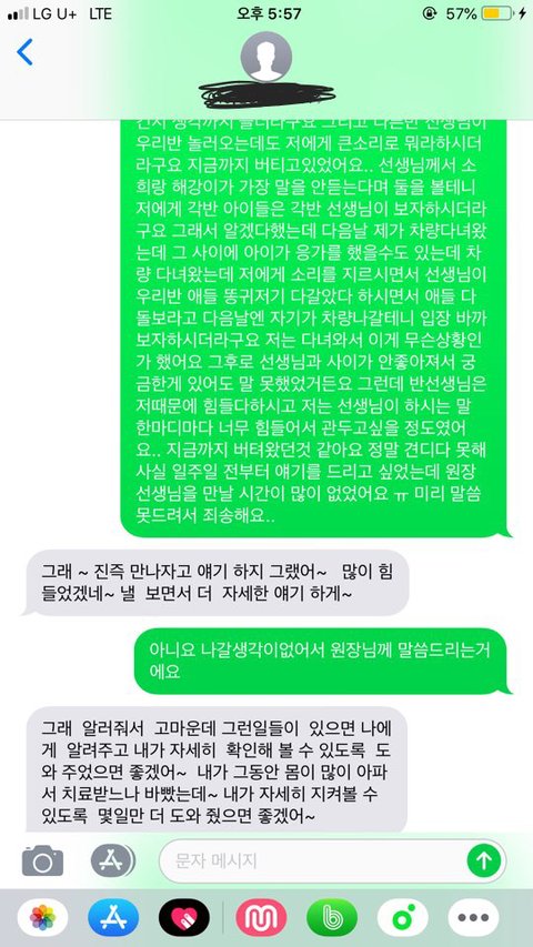 원장님은 문자내용들을 다른 선생님께 말씀드려