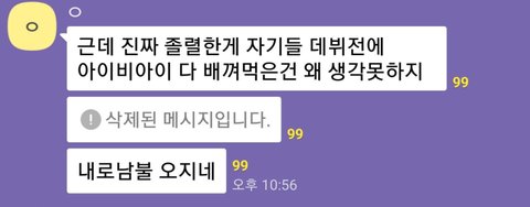 연습생들을 욕한적도 없고 우리가 얼마나 힘들게 데뷔했는지 아는입장에서 응원을 해주려고했는데 내로남불, 적반하장으로 나오는 팬들때문에 환멸나서 사진 올려볼게