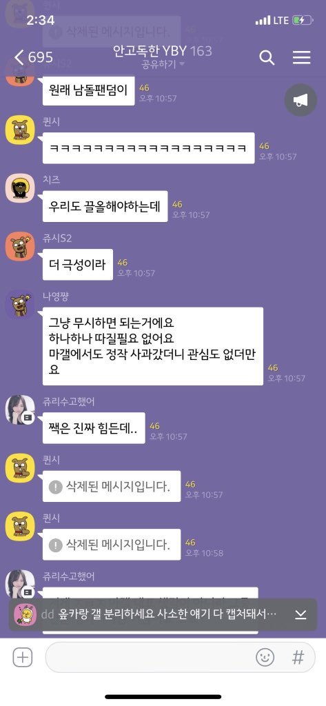 오픈채팅에서 yby팬들이 뒷담하는거 캡본이야