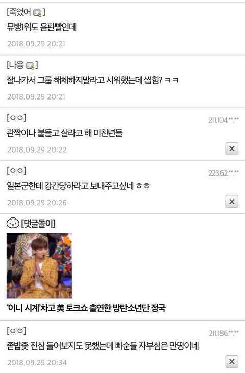 몇시간 전에 올라온 yby 팬덤 논란 이후 yby 팬들 반응임;; 이정도면 생각 없는듯;; ((여기서 혐오 워딩은 ~년이야ㅠ
