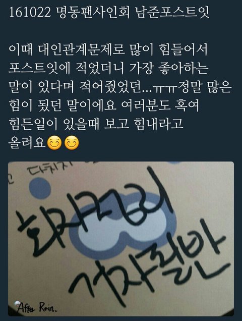 인간관계로 힘들어하는 팬에게 적어준 남준이의 포잇