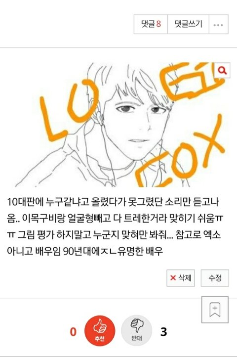 이거 맞힌 년들 ㄹㅇ 어떻게 맞혔는지 비결좀ㅋㅋㅋ 내가 그려놓고서도 너무 안 닮아서 그냥 맞히기 쉽다고만 해놓고 맞힐 줄은 몰랐는데ㅋㅋㅋ 비결좀 ㄹㅇ