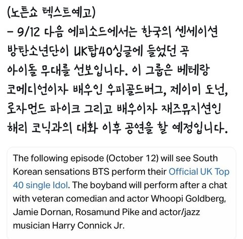 월드투어 영국갈때 BBC토크쇼 출연하는데