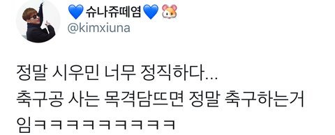 시우민이 축구용품 산 목격담이 올라오면 바로 축구하고 온 사진이 뜨고