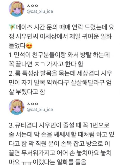 직원한테 살살해달라고 엄살부리고 무서워서 손놓지마요!하고 찡찡거렸을 햄찌 시우민 생각하면 너무 귀여워서 살수가 없다ㅠㅠㅠㅠㅠㅠㅠ