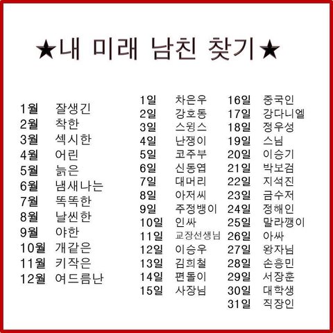 내 미래 남친 찾기 해봐 ㅋㅋㅋㅋ