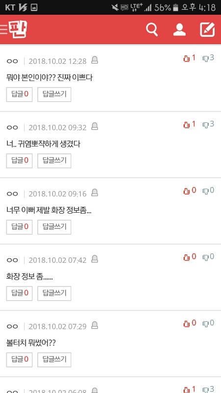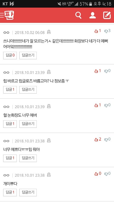 ++)아니이 ㅋㅋㅋㅋㅋㅋ나혼자 댓안썼다고오오오그냥 오랜만에 화장해봤는디 색깔맘에드는데 내주위애들은 공감을 못해주니까 색깔이쁘지 않냐고 글 올린건데 나한테 왜그래...