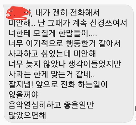 그 후 하루하루 지옥속에서 살다가 오늘 열시경 전화가 한번 울리고 끊어지길래 헤어지고 먼저 연락온적이 한번도 없으니까 실수로 눌렀겠거니 했습니다 삼십분 후 전화가 오길래 안받고 못참겠어서 제가 다시 전화했습니다.