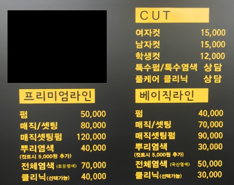 이거는 그 미용실에 붙어있는 가격표입니다.