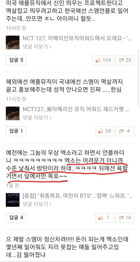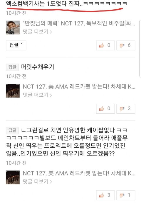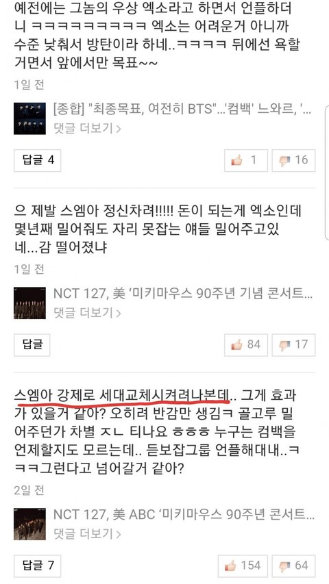 씹ㅁ소라 하는 걸 보니 엔시티 방패로 엑소랑 엑소엘 패려고 하는 듯