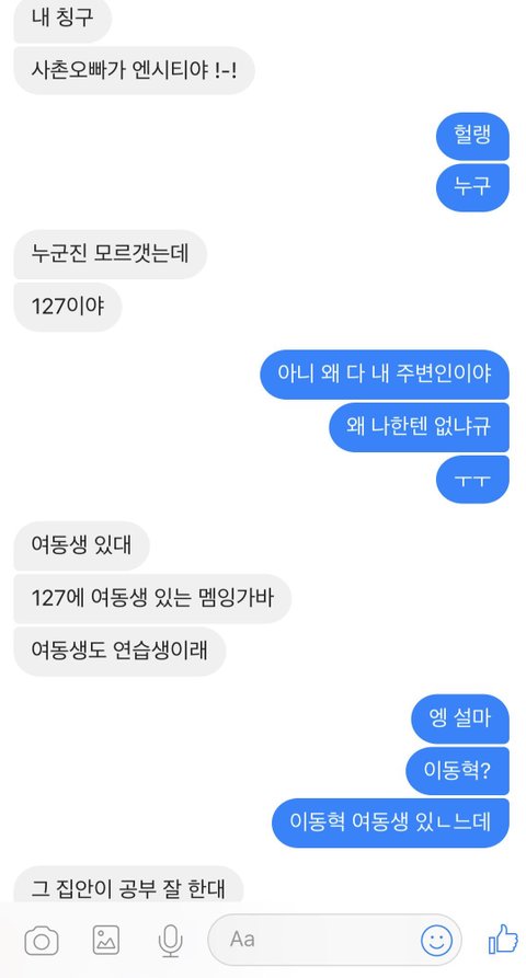 저번 그 태일이 추석 때 지하철 퇴근짤 나왔던 그 추석때 태일이 사촌 여동생이라고 하면서 막 누가 무슨 썰 올렷는데 그거 나중에 라디온가 거기서 그 얘기하니까 태일이가 사촌 여동생 없댔음ㅋㅋㅋㅋㅋㅋㅋㅋ