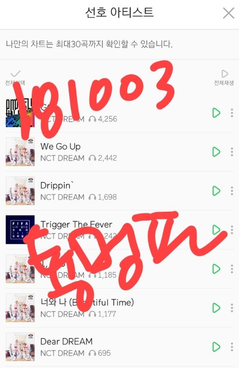 위의 예시를 따라서 쭉 스밍한 nct dream 곡들의 누적횟수를 인증해줘~