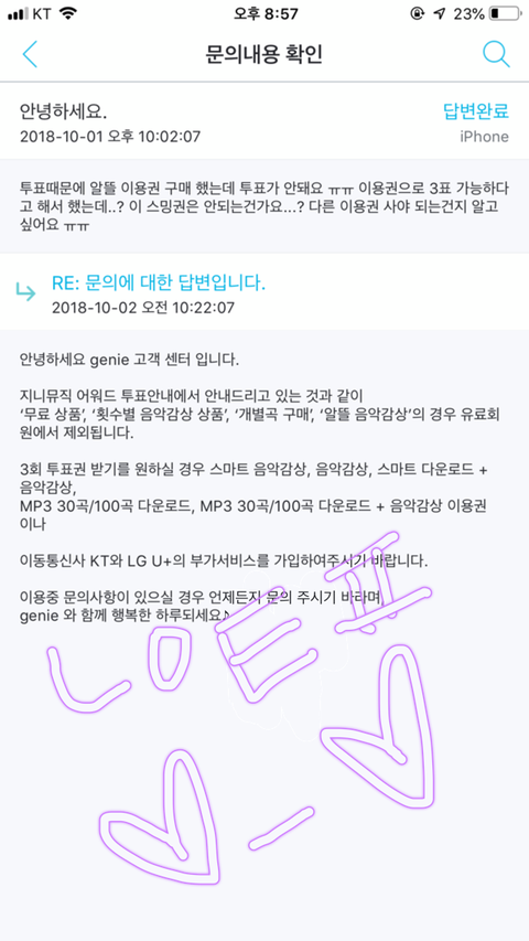 나 어제 답답하고 짜증나서 결제 했거든... ㅈ.니뮤.ㅈ에.. 처음엔 알뜰 하다가 1표씩 되어서 문의 했더니 ... 답 이래 와서 바로 해제 하고 다시 결제 했어..... 여유 있는 분들 슬슬 ..답답하고 짜증나고 빡쳐서 결제 까지 하고 있는 상태 많은 아미분들이...