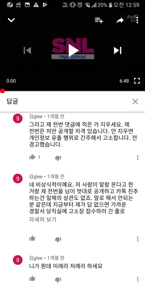 윗 댓글을 고소해놨더군요.