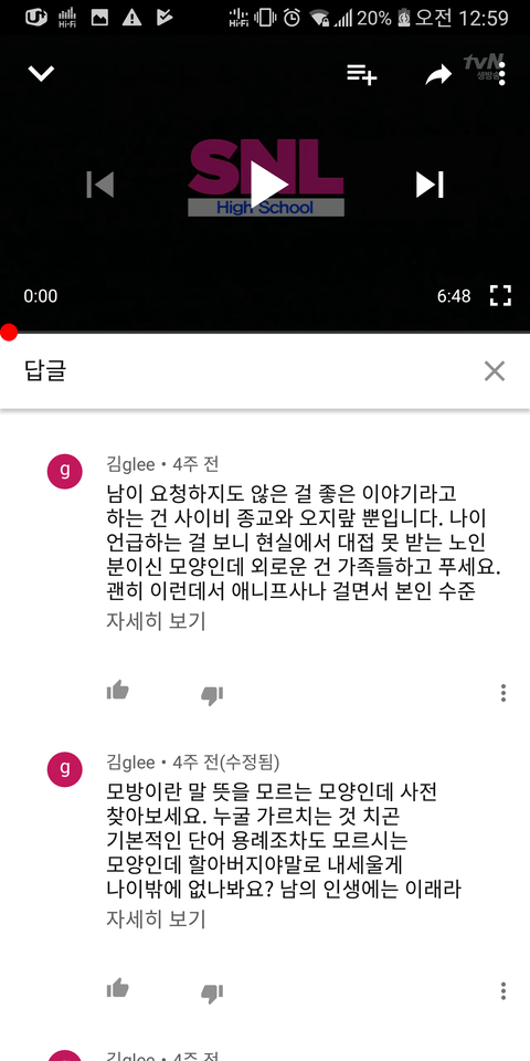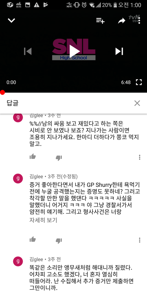 그런데 저는 그 댓글에 답글을 달아버리는 크나큰 실수를 합니다. 그냥 지니갔으면 됐을것을...