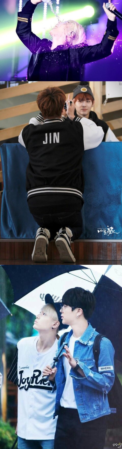 무대에서 물 뿌리는 동생과, 형