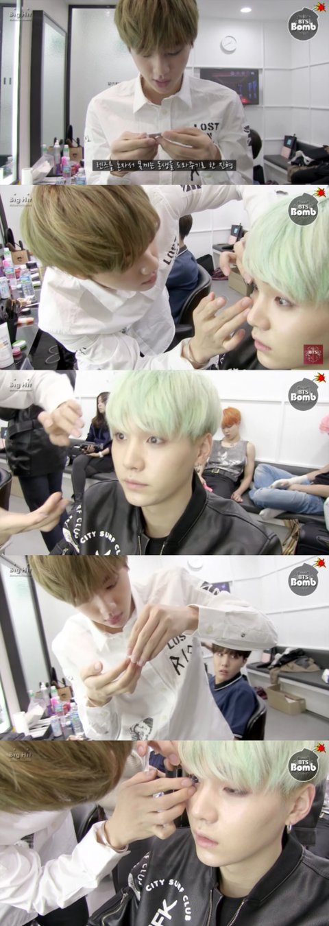 렌즈를 혼자 못끼는 슈가를 도와주는 진—실패—다시장전(feat.정호석표정)—성공