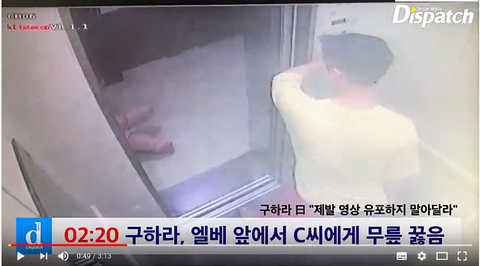 캡처한거보이시죠?? 엘베 cctv영상인대.. 구하라가 동영상 유포하지말라고 무릎꿇은거예요!!