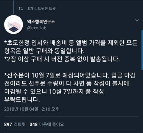 선주문 10월 7일 까지다!!!! 돈있으면 빨리 지르기 ㄱㄱ