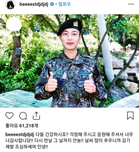 양요섭 2019년 1월24일 의경입대