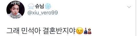 근데 오빠 사실 그거 반지 아니었어여ㅠㅠㅠ 멜로눈빛 뿜뿜한 귀여운 요정님이 갑작스런 청혼에 놀라 도망가서 흑화되어 까리한 엑소로 돌아온 이야기는 오래도록 전설로 남아 달달귀염 시우민파와 흑화된 섹시 까리한 시우민파로 나뉘게 된 계기가 되었다는 후문이