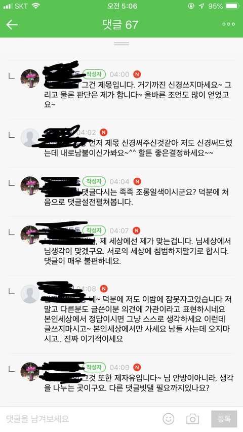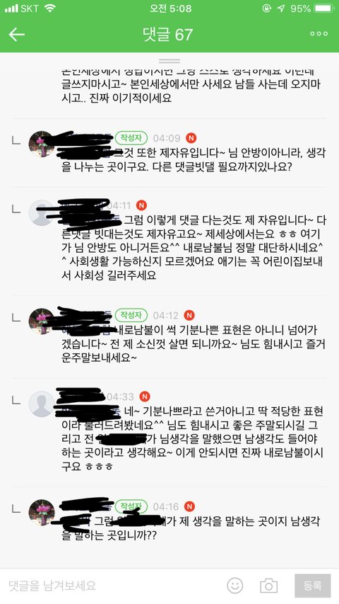 작성자가 또라이지 지 세상에선 지 생각이 중요하면 그런데다 글은 왜 써 지 생각속에서 살지 반대의견 말한다고 팩해서 부들거리는거봐