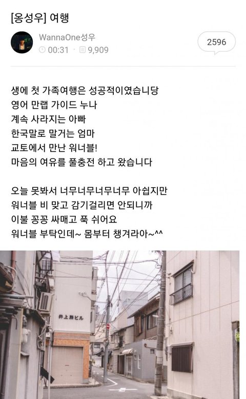 옹성우가 가족과 함께 교토로 생애 첫 가족여행을
