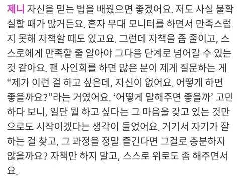 평소에 제니 좋아해서 인터뷰나 영상 다 찾아보는데