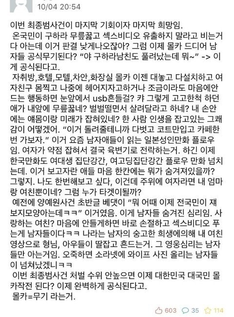 진짜 무서움 이것조차 성급한 일반화라고 혹여나 말하는 사람이 있다면 더 무서울 것 같음 그게 성급한 일반화면 몰카에 이렇게 많은 선례들이 왜있음? 만약 처벌 낮게 나오면 진짜,, 상상하기 싫다