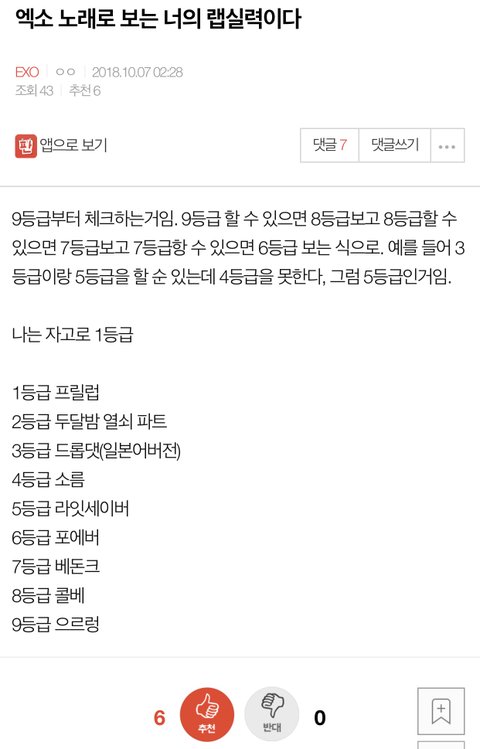 글쓴애 ㄹㅇ 랩파트 맹연습해서 다 클리어하고 등급 매겼을거 생각하니까 조카 웃김ㅋㅋㅋㅋㅋㅋㅋㅋ